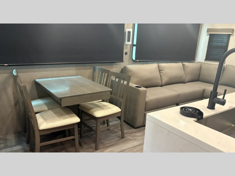 Sleeps 5 Slides 3 Length 42 ft 11 in Ext Width 8 ft Ext Height 11 ft 8 in Int Height 6 ft 9 in Hitch Weight 1254 lbs GVWR 11823 lbs Dry Weight 10323 lbs Cargo Capacity 1500 lbs Fresh Water Capacity 38 gals Grey Water Capacity 88 gals Black Water Capacity 30 gals Furnace BTU 35000 btu Available Beds RV King Refrigerator Type Stainless Steel 12V Refrigerator Size 10.7 cu ft Cooktop Burners 3 Shower Size 48" x 30" LP Tank Capacity 20 lbs Water Heater Type Tankless AC BTU 15000 btu Axle Count 2 Washer/Dryer Available Yes Number of LP Tanks 2 Shower Type Shower w/Seat Similar Floorplans