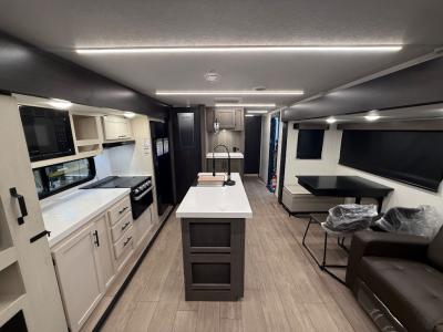 Sleeps 4 Slides 2 Length 34 ft 6 in Ext Width 8 ft Ext Height 11 ft 2 in Hitch Weight 1080 lbs GVWR 9750 lbs Dry Weight 7258 lbs Cargo Capacity 2492 lbs Fresh Water Capacity 81 gals Grey Water Capacity 70 gals Black Water Capacity 35 gals Available Beds Queen Refrigerator Type 12V Residential Style Refrigerator Size 10 cu ft Cooktop Burners 3 Number of Awnings 2 Water Heater Type On Demand Tankless AC BTU 15000 btu TV Info LED TV Awning Info 11' & 9' Axle Count 2 Shower Type Radius Electrical Service 30 amp Solar Wattage 100 watts Similar Travel Trailer Floorplans