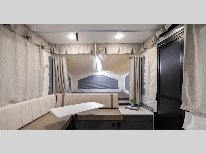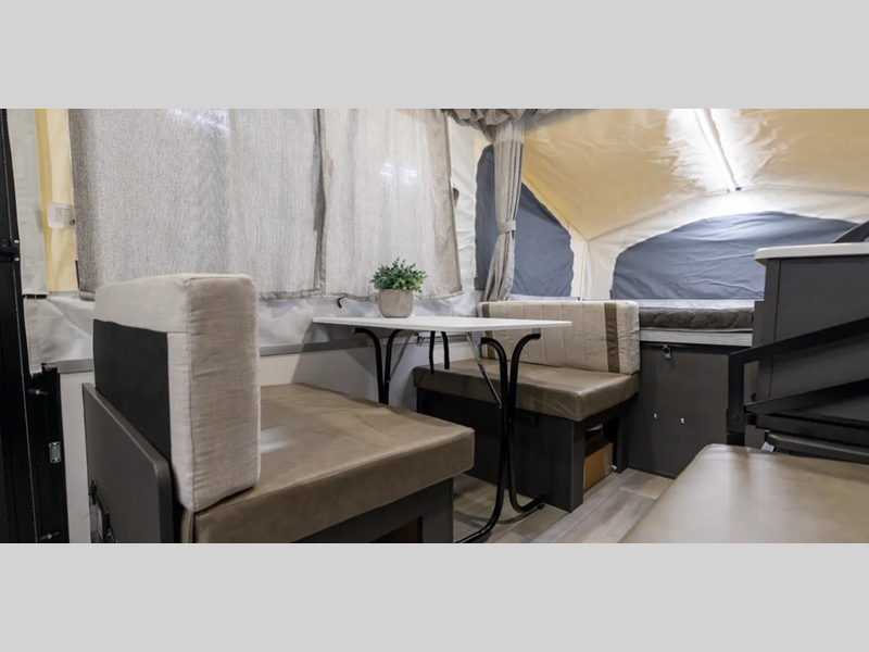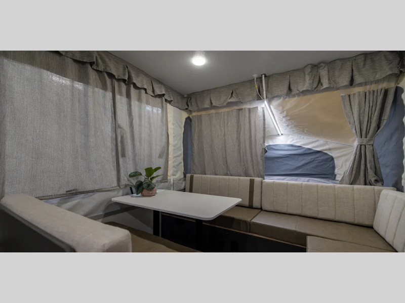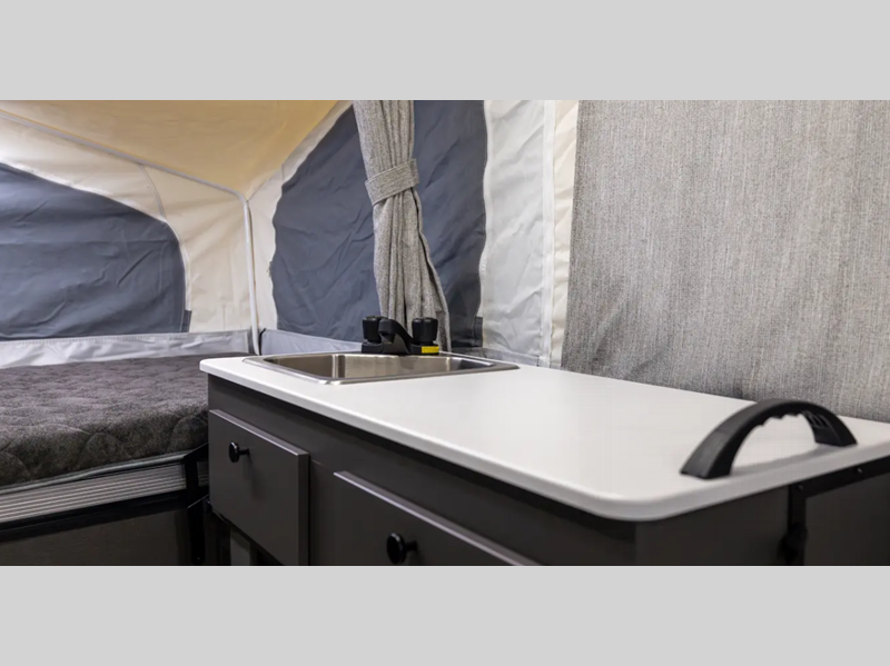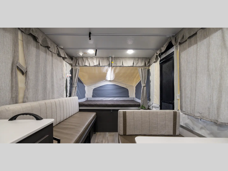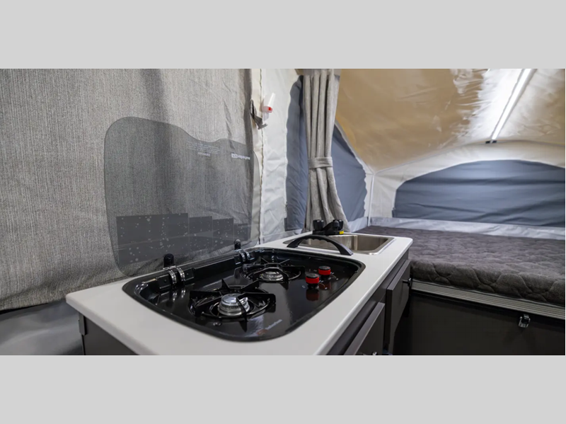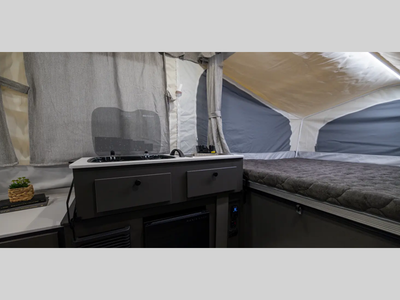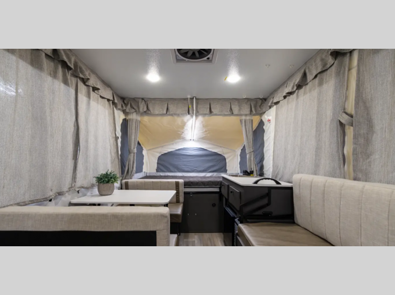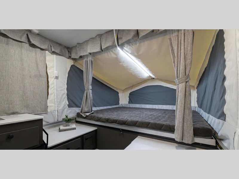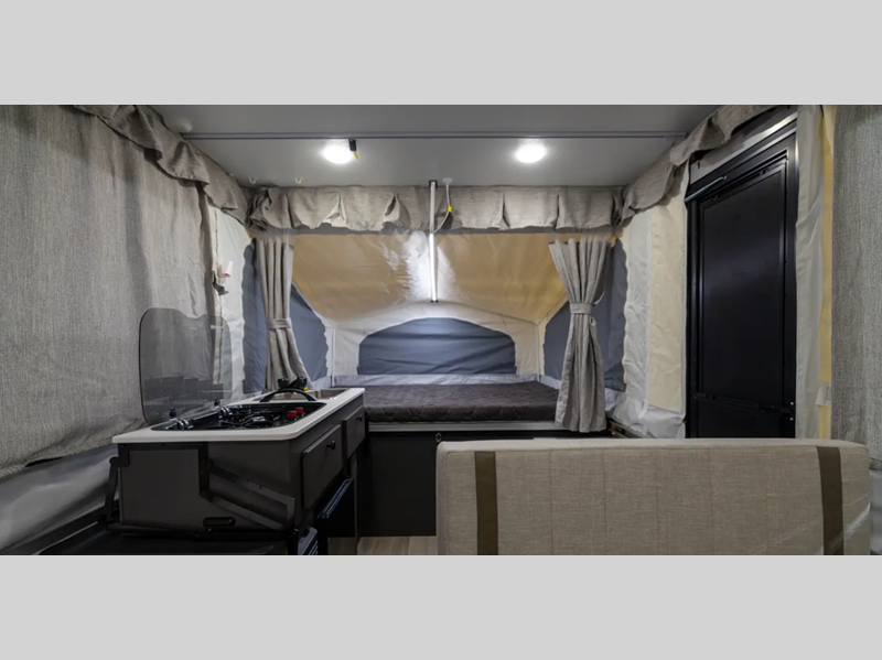 The Freedom Series will elevate your camping experience providing you a quality camper to maximize your tent camper investment. You will love the convenience of the powered roof lift for easy set-up and four stabilizer jacks for in camp stability. You will also enjoy a MaxxAir fan for ventilation included in the Core Convenience Package, along with an awning with LED lighting, a 12V refrigerator with a 100W roof solar panel plus more!